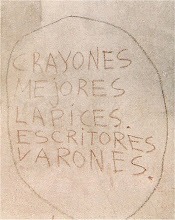Los textos de Cachilo, pequeños, concisos, certeros como las verdades que solamente producen los iluminados, proponen esa mutación de los habitantes de la ciudad al convocarlos a la participación y al protagonismo “poéticos”. A reproducirse y multiplicarse ilimitadamente parecen buscar, desde el frágil fulgor de sus colores, la mirada de todos los transeúntes para ofrecerles el espectáculo de su mensaje.Aceptarlo y difundirlo, como se propuso hacerlo este grupo que cumplió su obra, acaso sea la forma mas (sic) justa de reconocer y honrar sus valores, aunque implique la paradoja, seguramente insalvable, de transponer su irredenta escritura en una versión inevitablemente libresca. Ella posibilitará, sin dudas, una lectura más plena –ya que no más leal- de esas inscripciones tan imprevistas como proliferantes que podrían (o que deberían) habernos sorprendido a la vuelta de cualquier esquina.